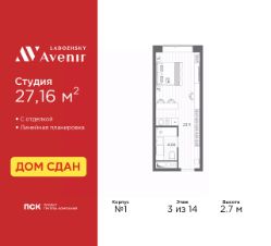 Продаются 1-комн. апартаменты-студия с отделкой в ЖК "Ladozhsky AVENIR" на 3 этаже. Общая площадь: 27.16 кв.м., площадь гостиной 23.11 кв.м., из которых 5 кв.м. выделено под кухонную зону. Все окна выходят на одну сторону. В апартаментах один совмещенный санузел. Высота потолков 2.7 м.