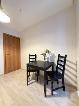 Вас порадует продуманная планировка жилья: комната 14,6 квадратных метров, кухня занимает 8,2 квадратных метра с лоджией 2,4м2, которая открывает чудесный вид на Неву и Советский проспект, позволяя наслаждаться спокойствием природы и городскими пейзажами одновременно. Квартира включает в себя большую гардеробную 2,7м2, что позволит освободить спальню от лишней мебели.