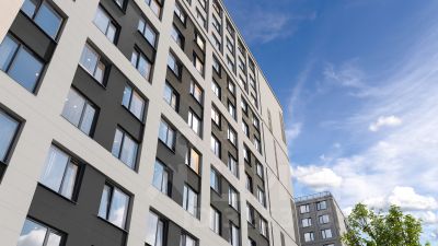 Апартаменты находятся в корпусе 1. Дом монолитный, одноподъездный, высотой 14 этажей. На этаже 50 квартир. В подъезде 4 пассажирских и 4 грузовых лифта.