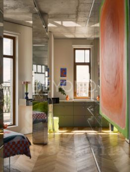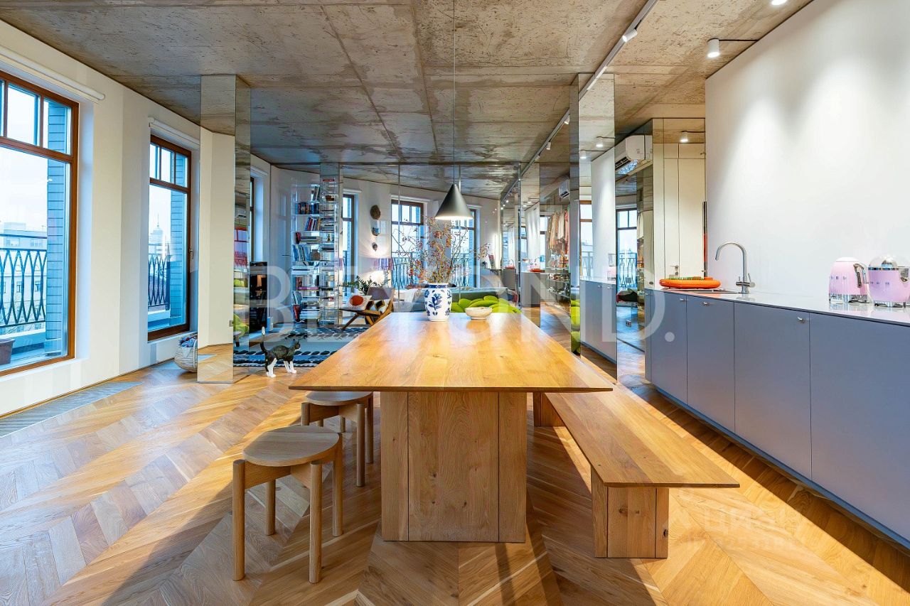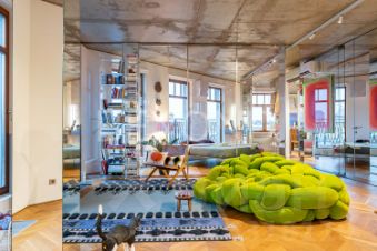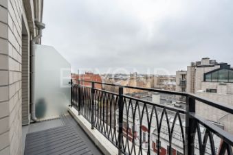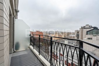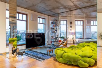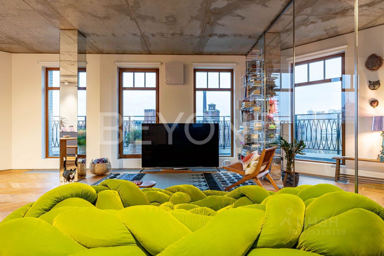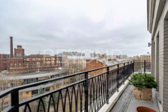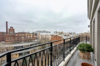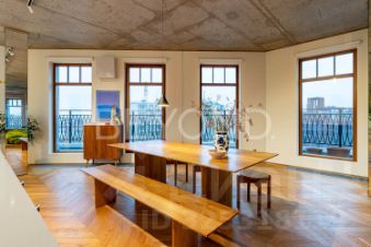 Воздушная open-space-планировка раскрывается террасой по периметру с подогревом пола и видами на современную и историческую части города. Отсюда открывается живописный вид на телебашню, крыши Петербурга и здание Бумагопрядильной мануфактуры.