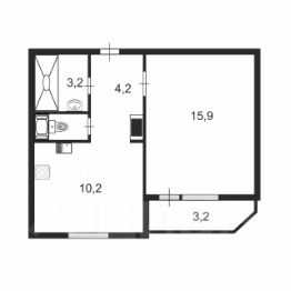 - Просторная спальня 15,9 м2, кухня 10,2 м2 квадратной формы, что очень удобно для расстановки мебели