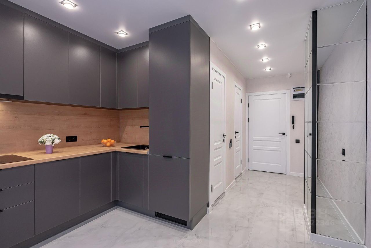 - Квартира с только что выполненным ремонтом, мебелью и техникой. Ремонт собственники делали для себя с самыми качественными материалами. Заменены все трубы, сантехника, переделаны розетки, выключатели, выровнены стены, поклеены обои, на полу керамогранит. Подогрев пола в санузлах, заменены подоконники, сделан натяжной потолок со светильниками, выполнена отделка балкона, сделано освещение. - Новая кухня со встроенной техникой: плита, вытяжка, посудомоечная машина, микроволновая печь, духовой шкаф