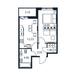 Прямая продажа от застройщика! Готовая Однокомнатная квартира 36 кв.м с кухней 12.23 кв.м с чистовой отделкой на 1 этаже в сданном ЖК "Полис Лаврики".