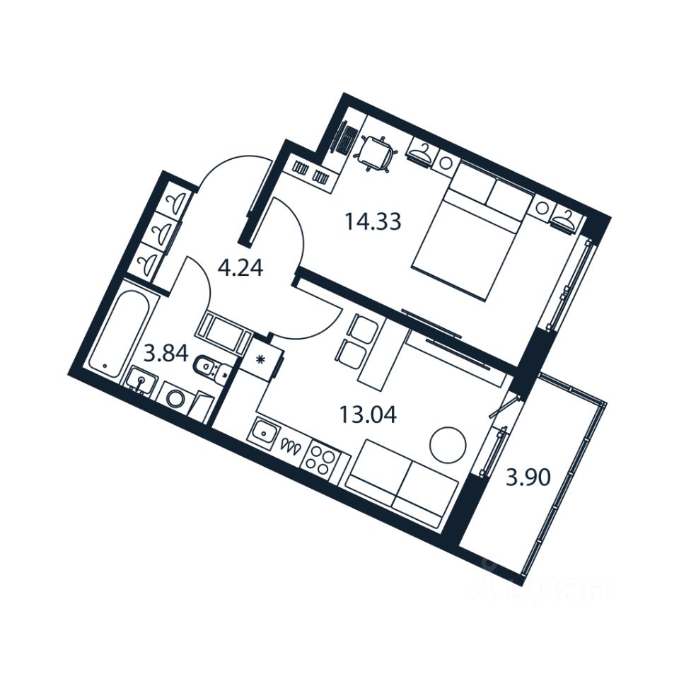 Прямая продажа от застройщика! Готовая Однокомнатная квартира 34.4 кв.м с кухней 13.04 кв.м с чистовой отделкой на 11 этаже в сданном ЖК "Полис Лаврики".