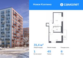 Строим кварталы для жизни с заботой о будущем. Предлагается 1-комнатная квартира комфорт-класса 31,4 кв.м в корпусе 45 на 6 этаже, в ЖК "Новое Колпино"