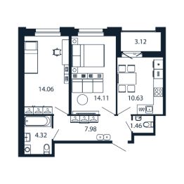 Прямая продажа от застройщика! Готовая Двухкомнатная квартира 52.1 кв.м с кухней 10.63 кв.м с предчистовой отделкой на 9 этаже в сданном ЖК "Полис Новоселье".