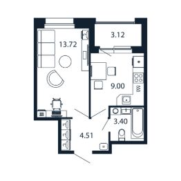 Прямая продажа от застройщика! Готовая Однокомнатная квартира 30.3 кв.м с кухней 9 кв.м с предчистовой отделкой на 4 этаже в сданном ЖК "Полис Новоселье".