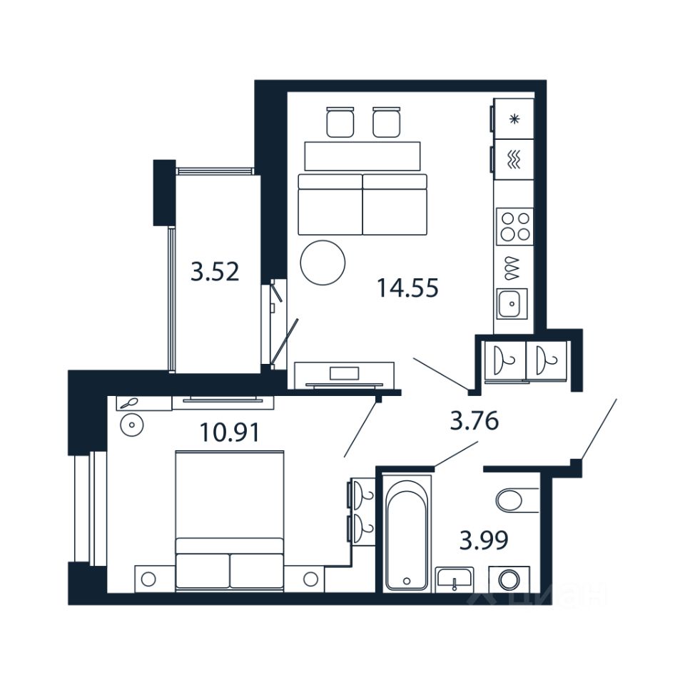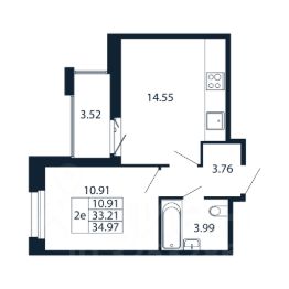 Прямая продажа от застройщика! Готовая Евро-двушка 33.1 кв.м с кухней 14.55 кв.м с предчистовой отделкой на 10 этаже в сданном ЖК "Полис Новоселье".