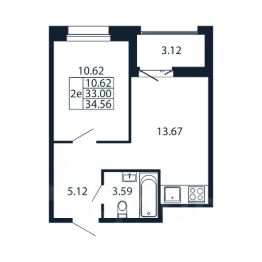 Прямая продажа от застройщика! Готовая Евро-двушка 32.7 кв.м с кухней 13.67 кв.м с предчистовой отделкой на 12 этаже в сданном ЖК "Полис Новоселье".