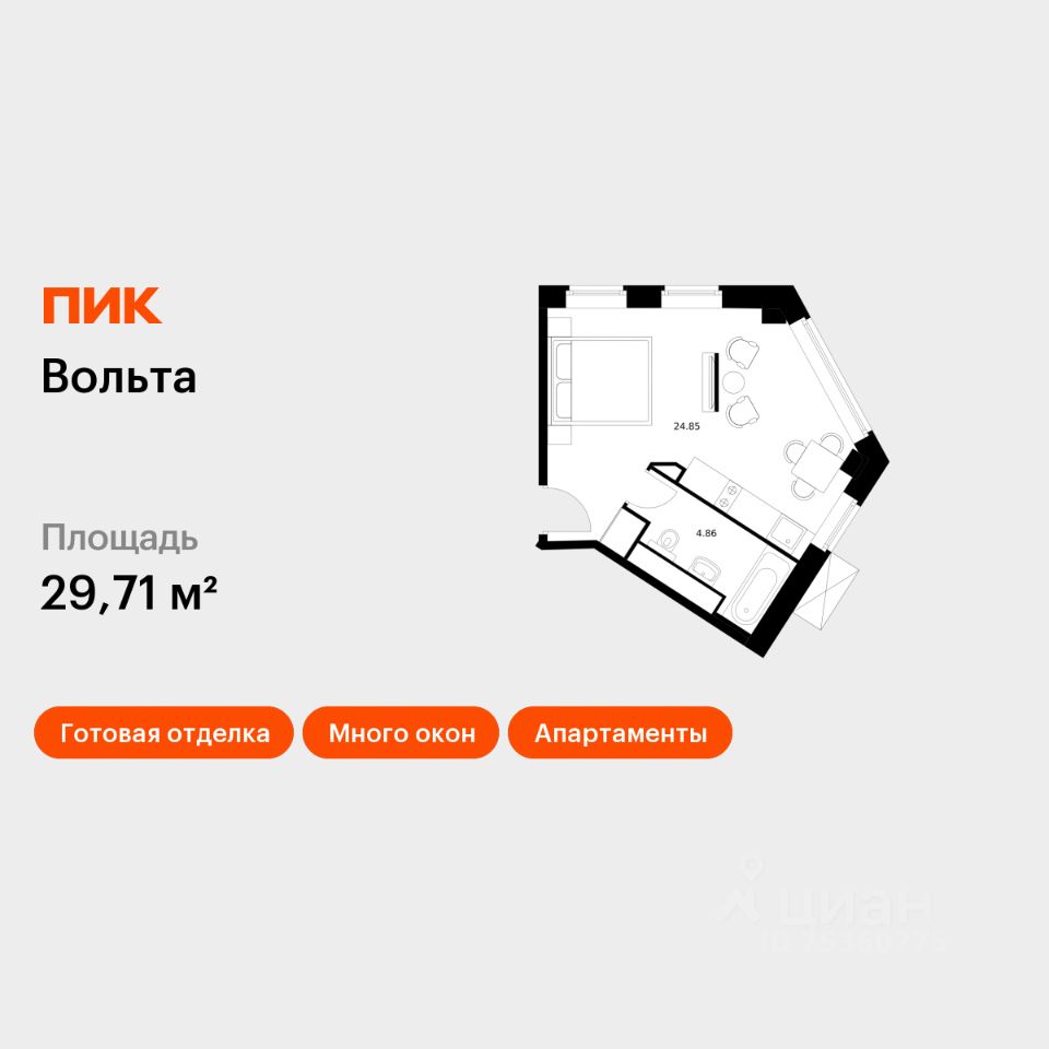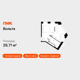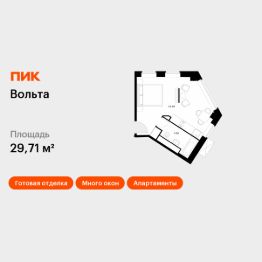 Продаются апартаменты-студия площадью 29,71 кв.м на 4 этаже 15 этажного дома (Вольта, Секция 1) проекта ПИК Вольта.