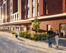 Для прогулок возле реки Охты благоустроят набережную. Для автомобилей предусмотрена парковка и подземный паркинг. Артикул 818611 (Застройщик АО СЗ "Ладожский") [cn_sbp_1836346]