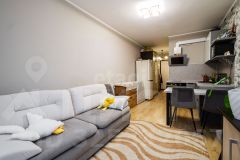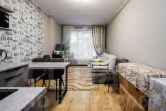Общая площадь составляет 24.1 кв.м, что позволяет комфортно разместиться одному человеку или молодой паре. Высота потолков — 2.58 метра, окна выходят на улицу, поэтому в квартире всегда много света. Пространство организовано максимально удобно, с учетом всех современных требований к комфорту и функциональности. Совмещенный санузел оснащен всей необходимой сантехникой.