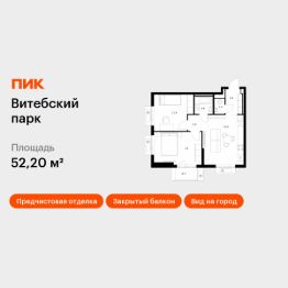 Продаётся 2-комн. квартира площадью 52,2 кв.м на 10 этаже 12 этажного дома (Корпус 6, Секция 1) проекта ПИК Витебский парк. Светлый просторный подъезд на уровне земли, функциональная планировка, большие окна, предчистовая отделка.