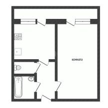 Параметры квартиры: общая площадь 32,3 м2, комната 16 м2, кухня 7,1м2