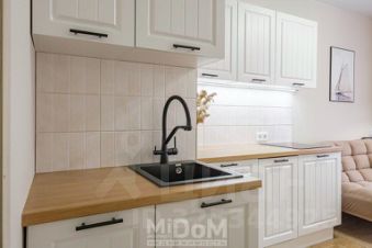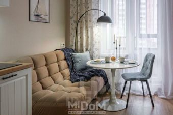 На кухне остается кухонный гарнитур и вся бытовая техника: посудомоечная машина, варочная панель, холодильник. Выведены розетки для телевизора с антеной - комнате напротив кровати, на кухне - напротив дивана. Осталось только закупить продукты и пригласить гостей на новоселье!)
