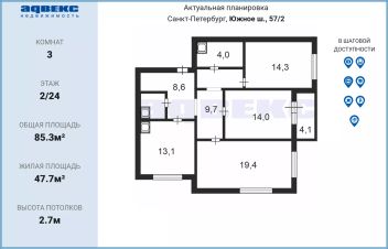 Продаётся просторная 3-комнатная квартира в премиальном ЖК у метро "Проспект Славы"