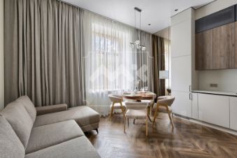 Общая площадь квартиры 69м2: 2 спальни, кухня-гостиная, 2 с/у, гардеробная, холл. Совершенно новый ремонт выполнен в стиле современной классики. Большие окна и высокие потолки 3,5м создают ощущение пространства и воздуха. Окна выходят на тихую Ординарную улицу.