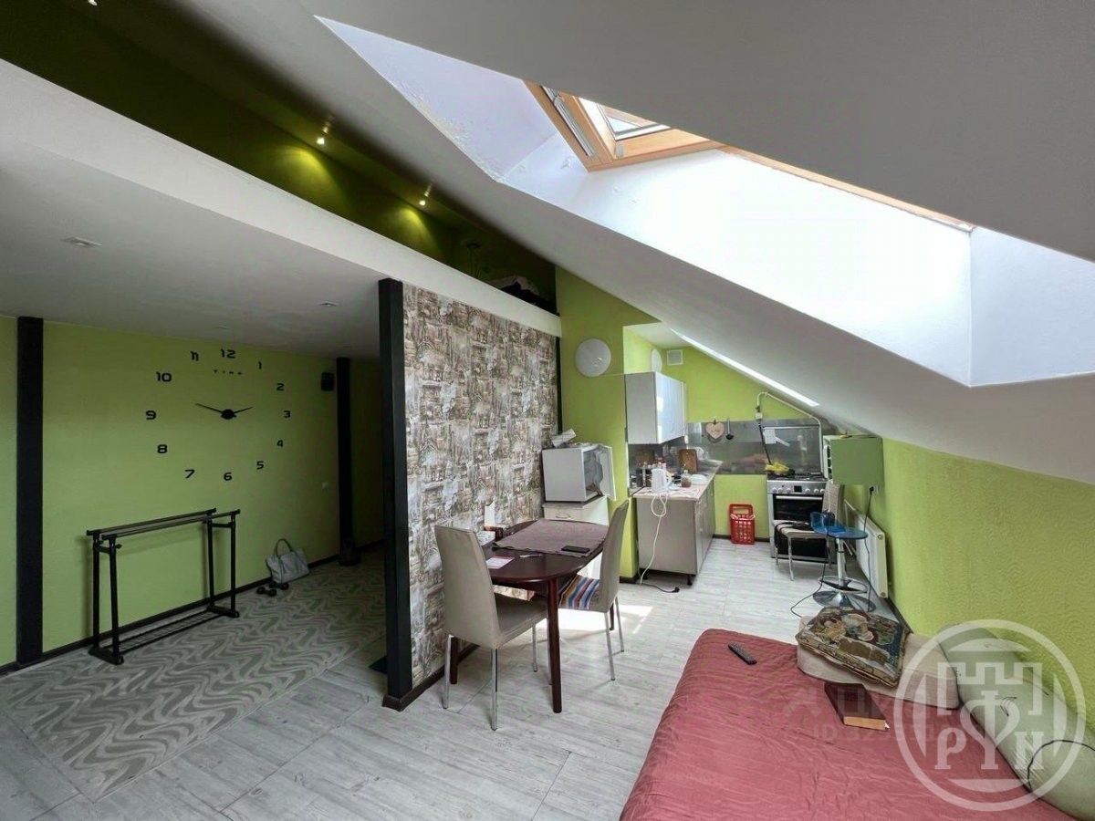 Продаётся двухуровневая необычная 1- комнатная квартира в доме 2012 года постройки. В ней только мансардные окна VELUX, но при этом очень много света и тепла. Благодаря потолкам 5,80 метра организовано двухуровневое пространство, отделка в современном стиле, минимализм. Площадь квартиры по полу 40,7 кв м, здесь у нас кухня-гостиная, санузел, прихожая, большое пространство свободного назначения. Площадь второго уровня 20 кв м, здесь организована спальная зона. Окна во двор, на восточную сторону. Санузел совмещённый, в кафеле, вместительная кладовка под лестницей на второй уровень.