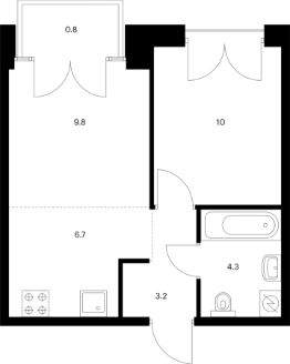 Продаётся 1-комн. квартира площадью 34,8 кв.м на 4 этаже 9 этажного дома (Корпус 2.2, Секция 9) проекта ПИК Лермонтовский 54. Светлый просторный подъезд на уровне земли, функциональная планировка, большие окна, без отделки.