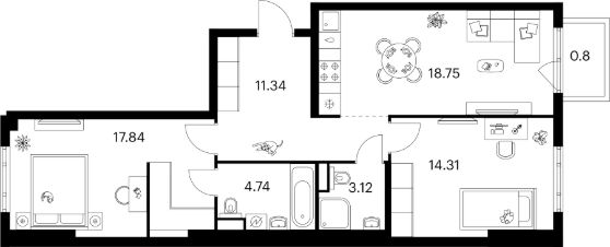 Продаётся 2-комн. квартира площадью 70,9 кв.м на 8 этаже 12 этажного дома (Корпус 4.1, Секция 1) проекта ПИК Таллинский парк. Светлый просторный подъезд на уровне земли, функциональная планировка, большие окна, без отделки.