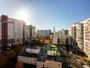 Полностью готова к проживанию — кухонный гарнитур, шкаф-купе, кровать, угловой диван, рабочее место, ТВ, холодильник, посудомоечная и стиральная машины (вся техника новая). Вид из окон: на прилегающую территорию и Лахта-центр, не на дорогу.