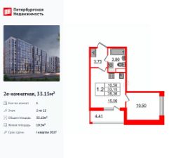 Продается уютная 1-комнатная квартира от застройщика в жилом комплексе "Бионика Заповедная" в динамичном Приморском районе. До метро можно добраться на транспорте всего за 11 минут. Удобная, классическая, функциональная европланировка, большая кухня-гостиная 15.06 м², вместительная прихожая 3.73 м². Общая площадь квартиры - 33.15 м², жилая 10.5 м², высота потолка 2.77 м. Квартира продается с отделкой "NORD LINE SILVER ВК NEW". Что особенного в ЖК "Бионика Заповедная"? • Оазис в городе 3 минуты пешком до Новоорловского заказника (140 ГА) • Захватывающие виды из окон на хвойный лесопарк • Всесезонный "Заповедный парк" во дворе площадью 23000 кв.м. • 5 единых входных групп с авторским дизайном и лаундж-зонами, сити-виллы на первых этажах с палисадниками и высотой потолков до 4 м • Места притяжения: фонтан "Бионика", спортивный кластер со скейт-парком, фотозоны с арт-объектами