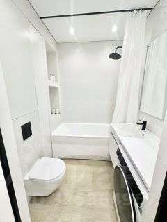В ванной новая комнате импортная сантехника, зеркало с подогревом, коллекторная, бойлер, стирально-сушильная машина LG (7кг загрузка)