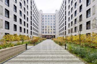 Архитектурное совершенство: Жилой комплекс, выполненный из элегантного клинкерного кирпича, гармонично вписывается в окружающую застройку.