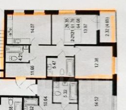 Общая площадь 64,5 кв.м (учитывая коэффициент балкона 0,5 )