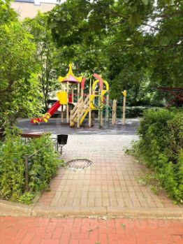 Тихий, ухоженный двор с детской и спортивной площадками.