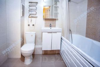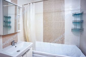 Хорошая планировка квартиры. Просторная прихожая, в нише оборудована вместительная гардеробная с местами хранения- штанги, ящики, полки для одежды и различных вещей, установлены зеркальные раздвижные двери. В комнате зона отдыха, спальное место и рабочая зона. Большая кухня с выходом на балкон. Санузел совмещённый, с полноценной ванной, есть место для стиральной машины, корзины для белья.