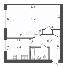Просторный балкон площадью 5 м² соединяет кухню и комнату.