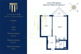 Площадь: 57,2 м² Планировка: 1 спальня + просторная гостиная.
