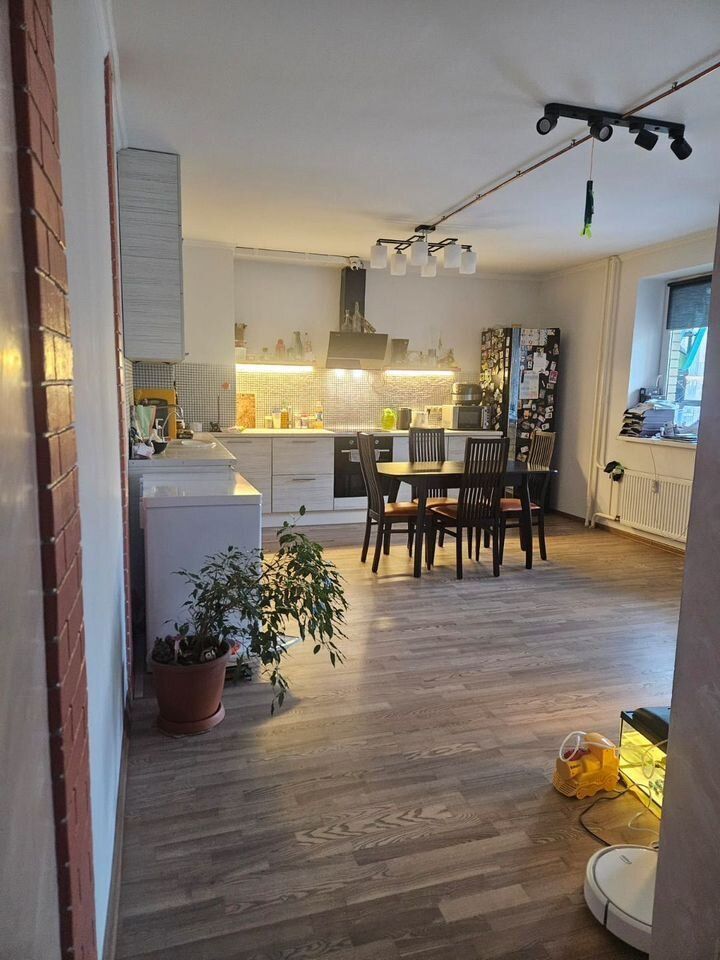 квартира для семьи с двумя детьми, комната для девочки с гардеробной , комната для мальчика, спальня для родителей и большая гостиная-кухня (26 м.кв.). Два санузла: один с ванной, второй с душевой (не кабиной), в душевой есть водогрей на случай отключения горячей воды. Теплые полы в прихожей и санузлах. Ремонт делался по моему проекту.