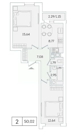 В продаже от застройщика 2 комнатная квартира 48.7 кв. м с черновой отделкой и практичной планировкой для удобной организации пространства. Корпус сдан, идет выдача ключей.