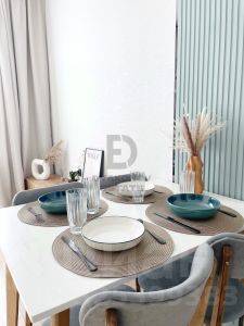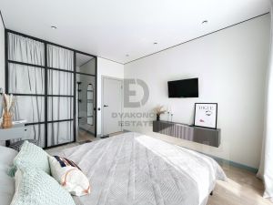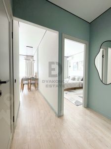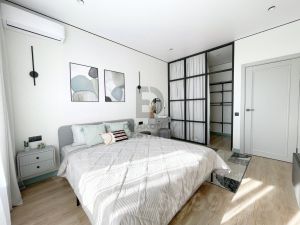 Квартира оборудована всей необходимой мебелью: комфортная двухспальная кровать, большая гардеробная, шкаф в прихожей.