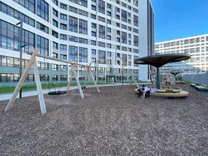 Двор ЖК закрытый, без автомобилей, что делает его полностью безопасным. Имеется несколько детских эко-площадок с различными уровнями развлечений. От песочниц и качелей, для самых маленьких, до скалолазок, турников и баскетбольной площадки, для детей школьного возраста.