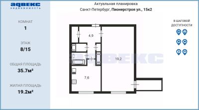 В шаговой доступности автобусная остановка. До м.Ветеранов можно доехать за 15-20 минут на транспорте. Рядом выезд на КАД, остановки автобусов в направлении Стрельны и Петергофа.