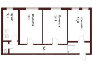 Классическая трёхкомнатная,с раздельными комнатами, позволяющая легко зонировать пространство для родителей и детей или обустроить кабинет.