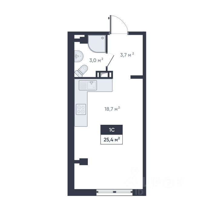 Продаётся студия 25.4 кв. м на 17 этаже в строящемся корпусе ЖК "Ромашки". Квартира без отделки — отличный вариант, чтобы сделать ремонт по своему вкусу. Сдача дома запланирована на IV квартал 2025 года. Выдача ключей — весной 2026 года.