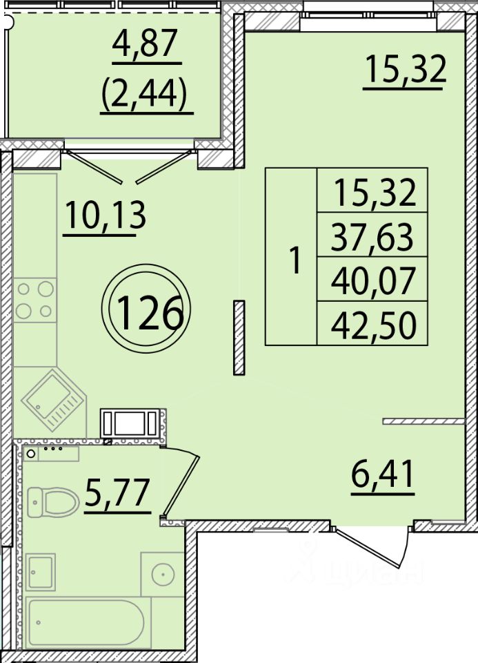 Общая площадь37,63 м²