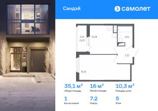 Строим кварталы для жизни с заботой о будущем. Предлагается 1-комнатная квартира комфорт-класса 35,14 кв.м в корпусе 7.2 на 5 этаже, в ЖК "Сандэй"