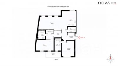 Арт. 128190524 На пятом этаже клубного дома "Приоритет" представлена резиденция общей площадью 135 кв. м, главным достоянием которой является захватывающая панорама из окон на акваторию Невы и ажурные конструкции Литейного моста.