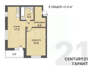 Однокомнатная квартира общей площадью 42 кв. м. Удобная и функциональная планировка.