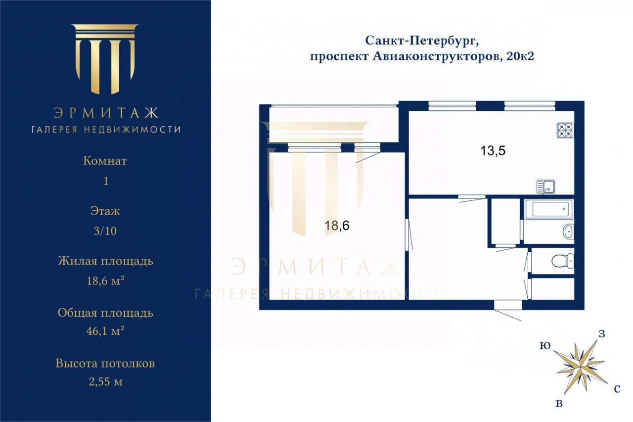 Прекрасная локация: вся транспортная, социальная и рекреационная инфраструктура в пешей доступности: ст. метро Комендантский проспект в 10 минутах транспортом от дома, доехать до КАД (10 мин) и ЗСД (5 мин), возможность попасть в любой район Санкт-Петербурга без пробок. В окружении парки, детсад, школы, магазины.