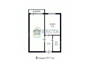 Описание:Однокомнатная квартира общей площадью 29.7 кв.м.