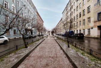 Доходный дом в стиле модер 1905 года постройки, архитектор Зограф А. А. Дом выполнен из кирпича, перекрытия из кирпичных сводов по стальным балками. Тихие улочки, старинная архитектура, уютные кафе и ощущение настоящего Петербурга. Здесь приятно жить, гулять и растить детей.