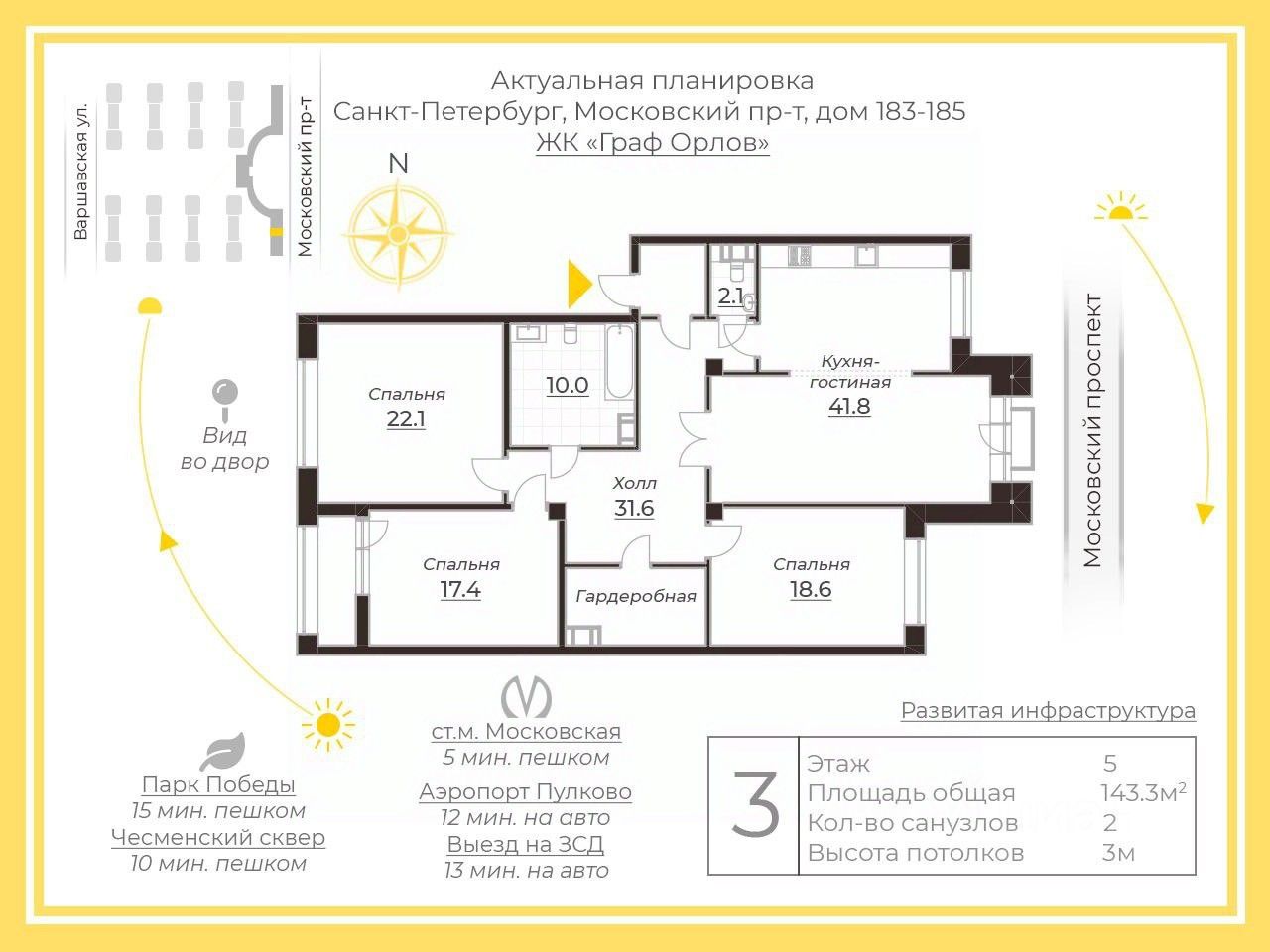 Расположение: Московский район —близость аэропорта и на ключевые магистрали ЗСД и КАД; вокруг — рестораны, парки, школа в самом ЖК(места есть), спортклубы, вся городская инфраструктура премиального уровня.