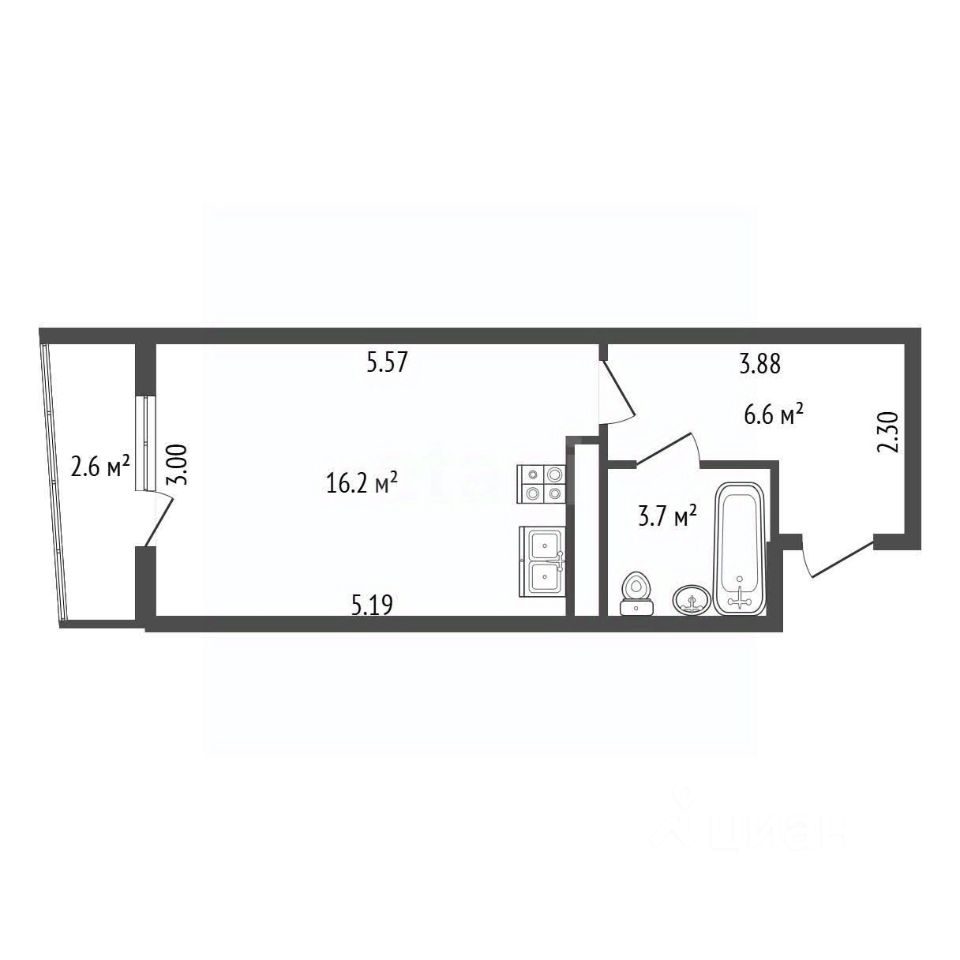 Площадь квартиры 29 кв м - отличный метраж для студии, есть небольшая прихожая и просторная жилая площадь, которую можно разделить на зоны.