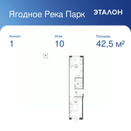 Общая площадь квартиры — 42.5 кв. м, этаж 10 из 12.